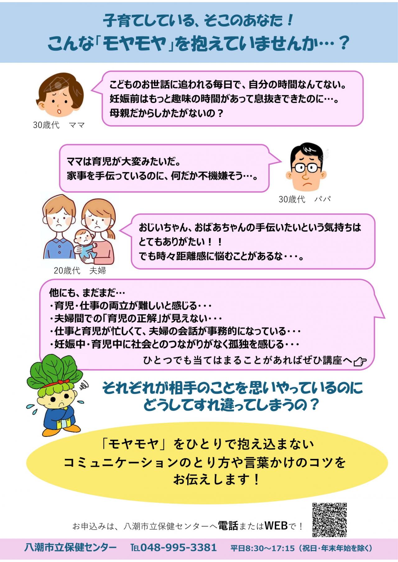こんな「モヤモヤ」を解決するためのコミュニケーションのとり方や言葉かけのコツをお伝えします!プレママ・プレパパの参加も大歓迎です!