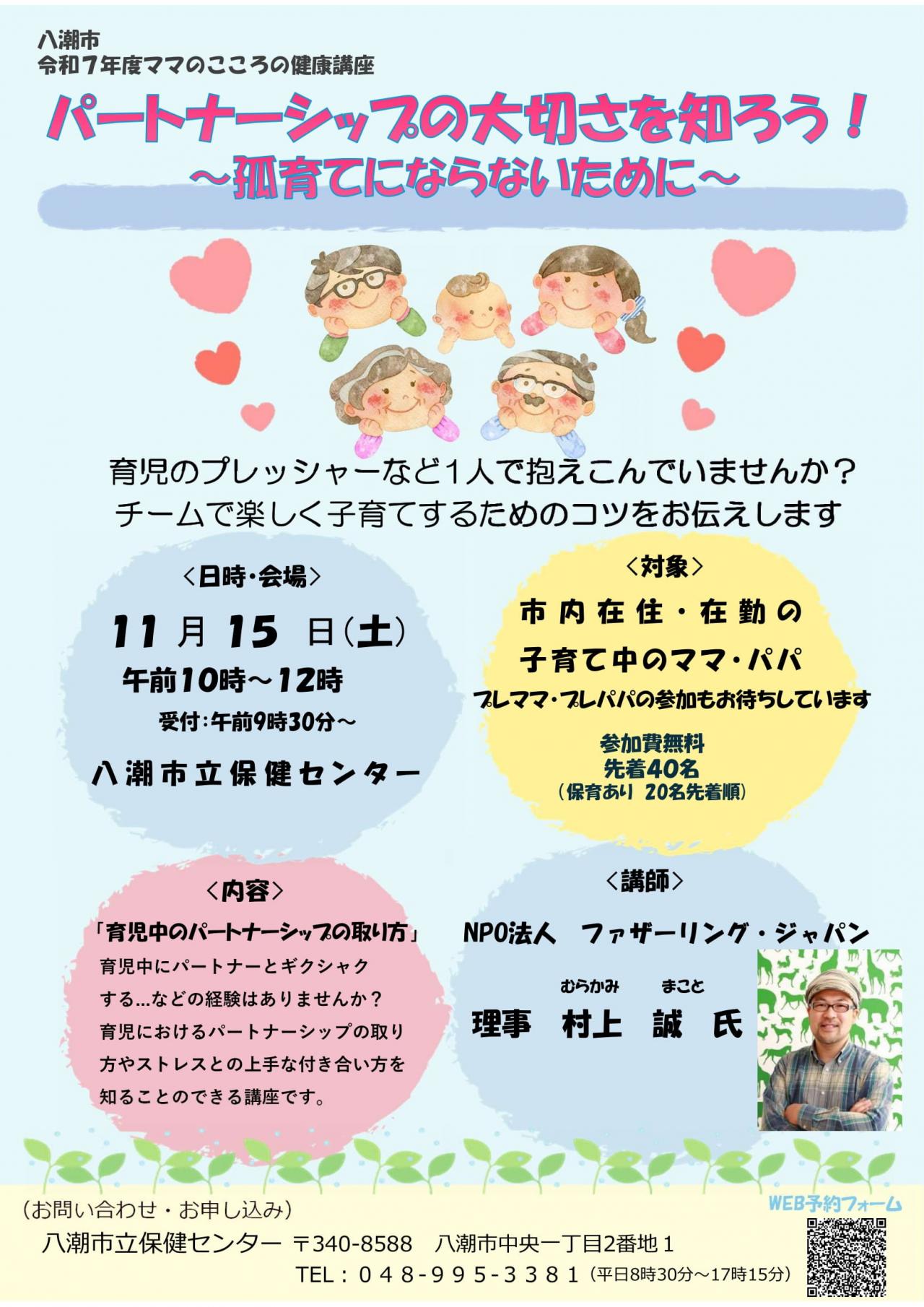 講座名「パートナーシップの大切さを知ろう!~孤育てにならないために~」